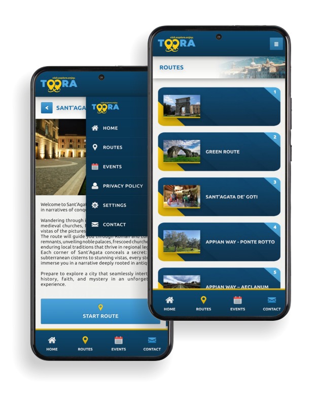 Con Toora, ogni itinerario prende vita grazie a vere mappe integrate con Google Maps, individuando tappe spesso nascoste ai circuiti turistici tradizionali. Scoprirete angoli inesplorati, borghi incantevoli e luoghi che raccontano storie millenarie. Ma non è solo un viaggio nel passato: Toora è anche un ponte verso esperienze uniche, grazie alla collaborazione con partner locali che vi faranno assaporare il meglio dell’enogastronomia, dell’artigianato e delle tradizioni del territorio.